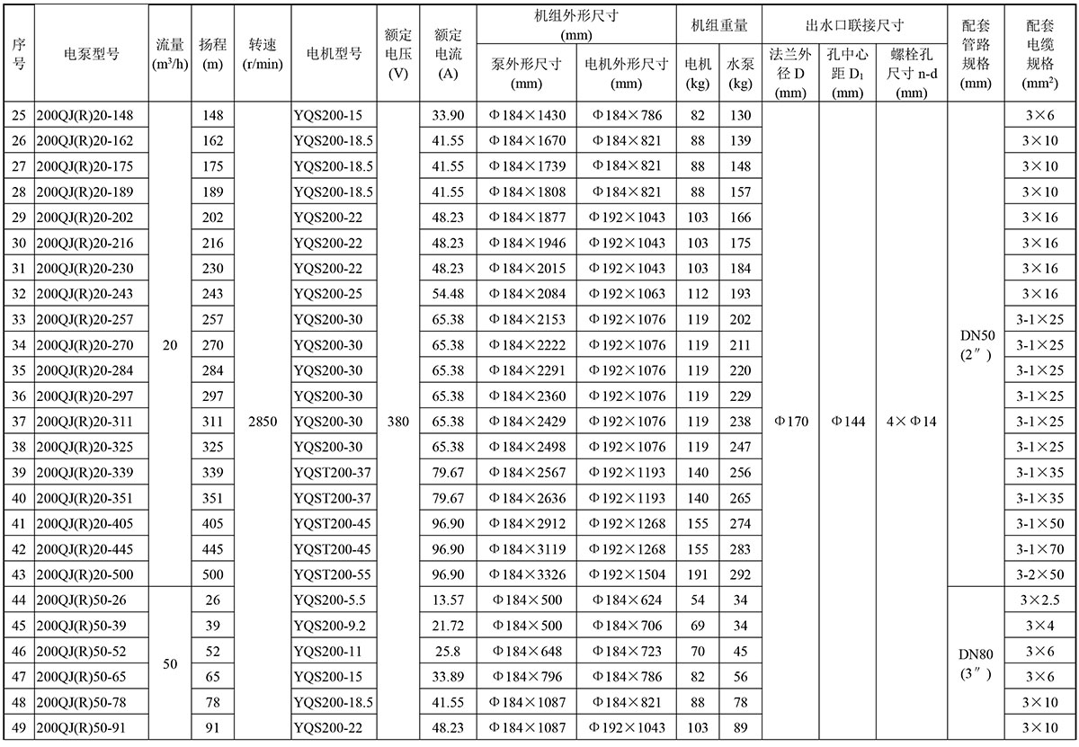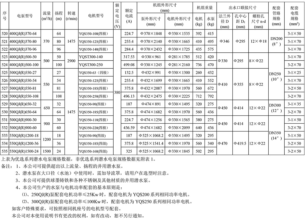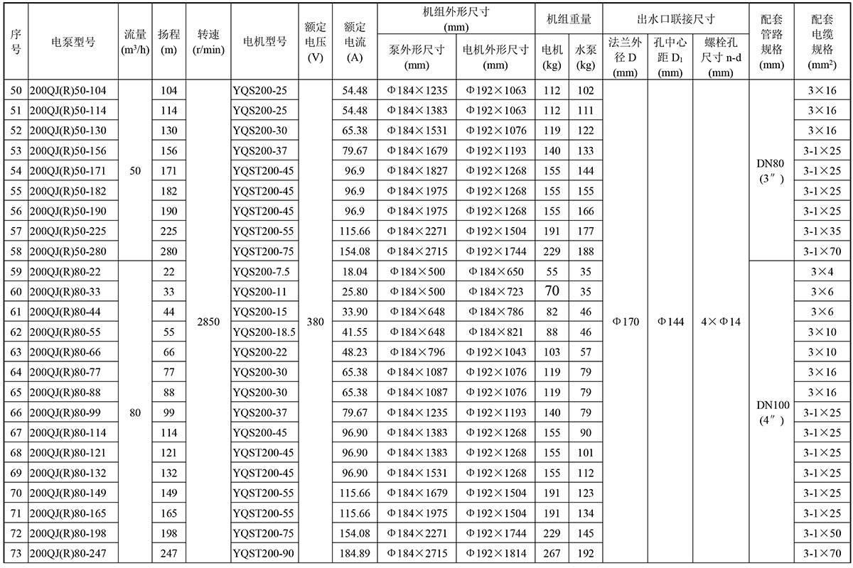 QJ型井用潛水電泵是從深井中提取地下水的成套機具,廣泛應用于農田灌溉、工礦企業(yè)的供排水及高原、山區(qū)的畜用水。QJR型井用熱水潛水泵,采用特殊材質和結構,用于提取地下熱水。另外本公司根據(jù)用戶需要生產海水、礦山等特殊場合用潛水電泵。該泵主機由QJ型潛水泵和YQS型潛水電泵機組成。潛入水下工作,具有結構緊湊、體積小、重量輕、安裝、使用、維護方便,運輸安全可靠、節(jié)約能源等優(yōu)點。