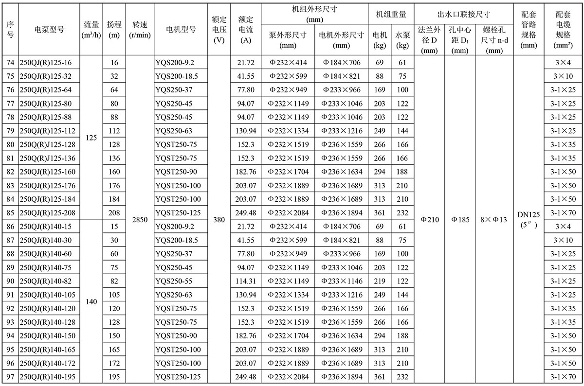 QJ(R) 型號特征:井用潛水電泵(熱水)
