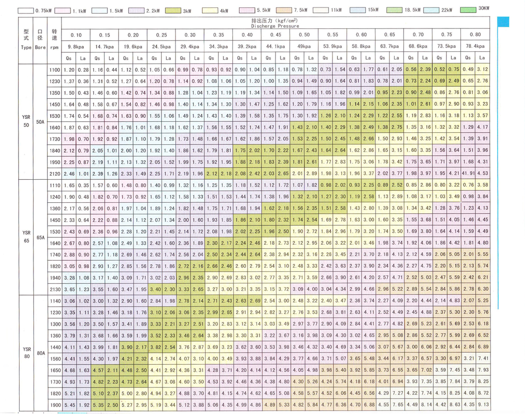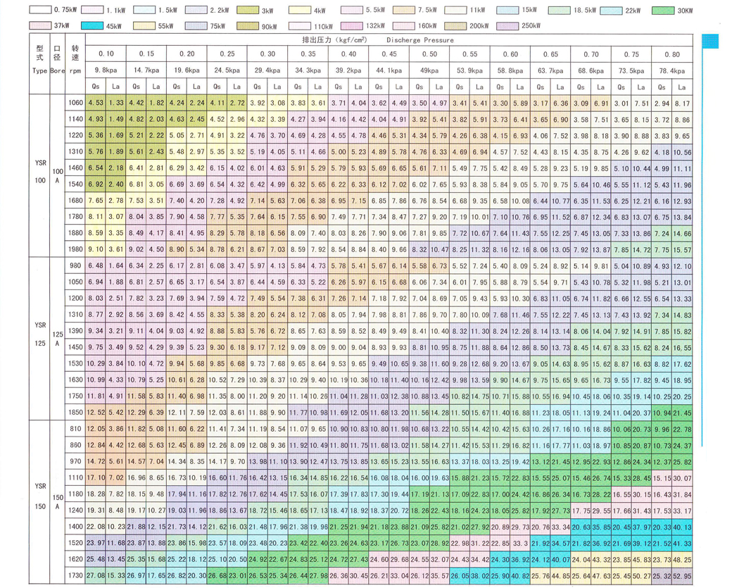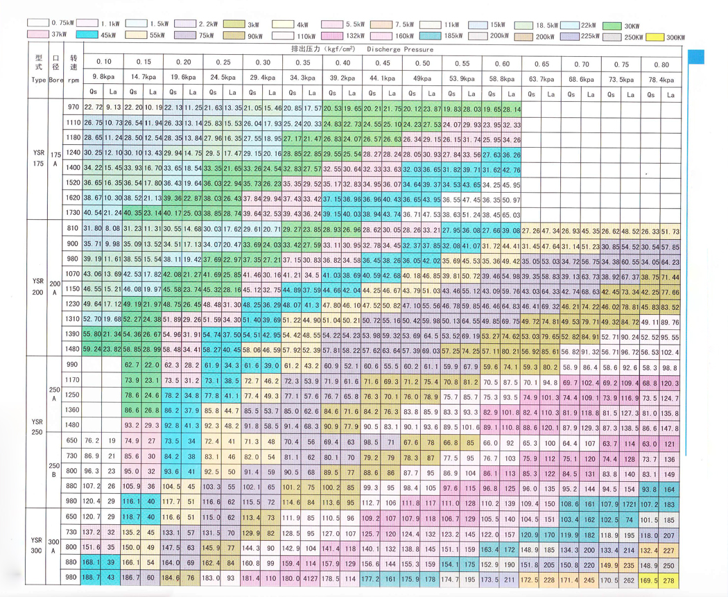 所謂效率優良,就是風機自身的發熱量減少,即溫度上升值下降,各種機型在干燥狀態下使用的排風壓力可達0.8kgf/cm2